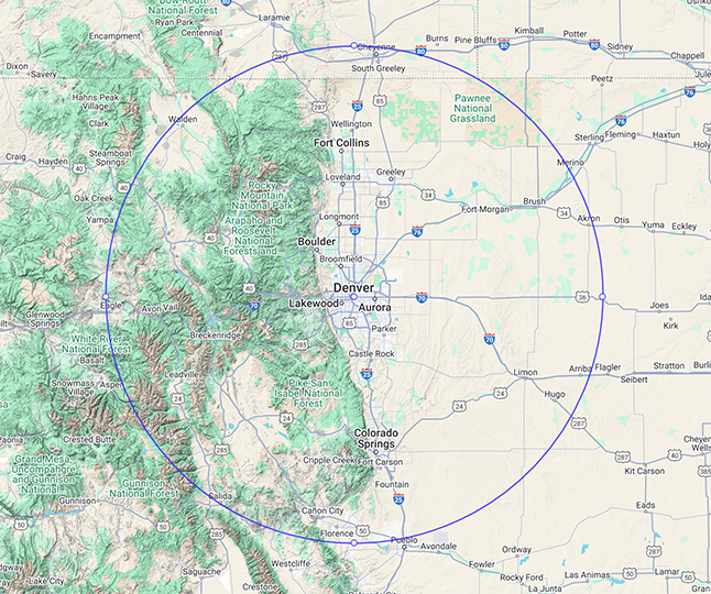 - Coverage: 100-mile radius from Denver, CO